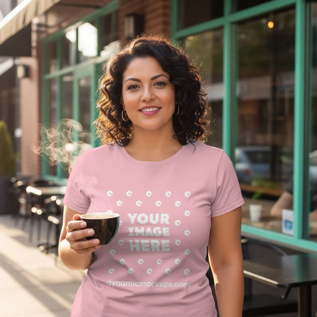 Need an Adult Hispanic Woman wearing a Pink Gildan 5000 T-shirt Mockup Template to make a realistic product design? Look no further! Our T-shirt mockup templates are perfect for bringing your creative ideas to life. These mockups add a stylish touch to any design. Download, edit online, or use Photoshop to personalize and present your T-shirt designs easily. Try Woman wearing a Pink Gildan 5000 T-shirt Mockup Template #17601 now!