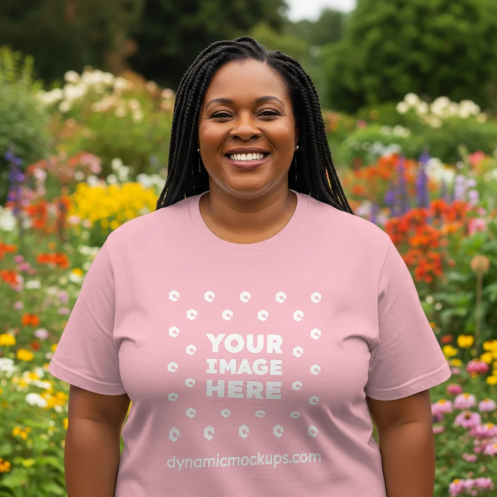 Need an Adult Black Woman wearing a Pink Gildan 5000 T-shirt Mockup Template to make a realistic product design? Look no further! Our T-shirt mockup templates are perfect for bringing your creative ideas to life. These mockups add a stylish touch to any design. Download, edit online, or use Photoshop to personalize and present your T-shirt designs easily. Try Woman wearing a Pink Gildan 5000 T-shirt Mockup Template #17615 now!