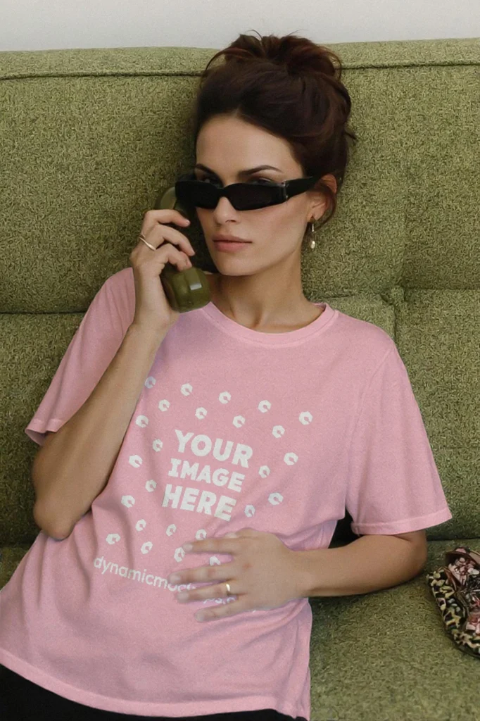 Woman Wearing Pink T-shirt Mockup Front View Template