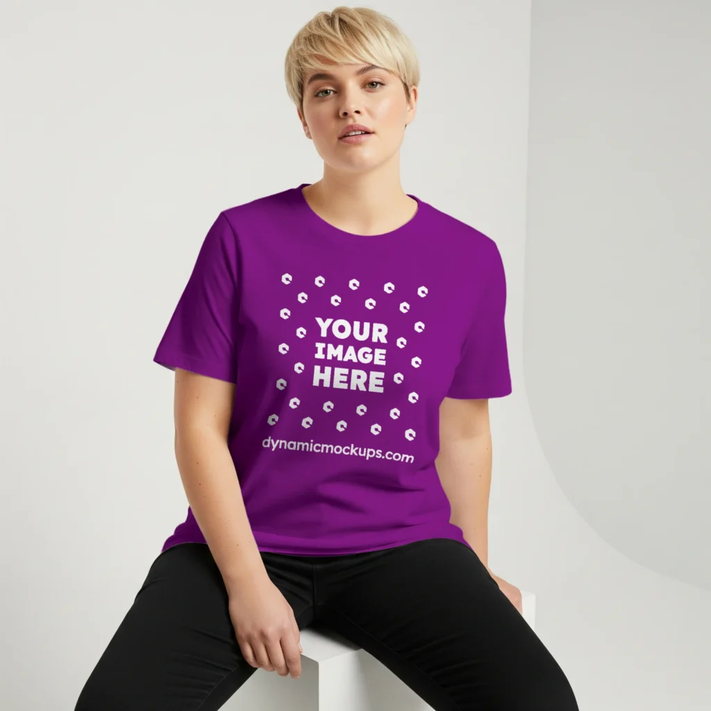 Woman Wearing Purple T-shirt Mockup Front View Template
