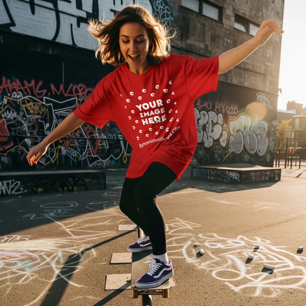 Need an Young White Woman wearing a Red Oversized T-shirt Front View Mockup Template to make a realistic product design? Look no further! Our T-shirt mockup templates are perfect for bringing your creative ideas to life. These mockups add a stylish touch to any design. Download, edit online, or use Photoshop to personalize and present your T-shirt designs easily. Try Woman wearing a Red Oversized T-shirt Front View Mockup Template #15983 now!