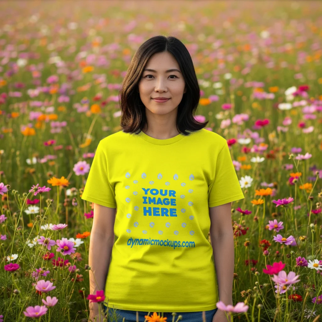 Need an Adult Asian Woman wearing a Yellow Gildan 5000 T-shirt Mockup Template to make a realistic product design? Look no further! Our T-shirt mockup templates are perfect for bringing your creative ideas to life. These mockups add a stylish touch to any design. Download, edit online, or use Photoshop to personalize and present your T-shirt designs easily. Try Woman wearing a Yellow Gildan 5000 T-shirt Mockup Template #17613 now!