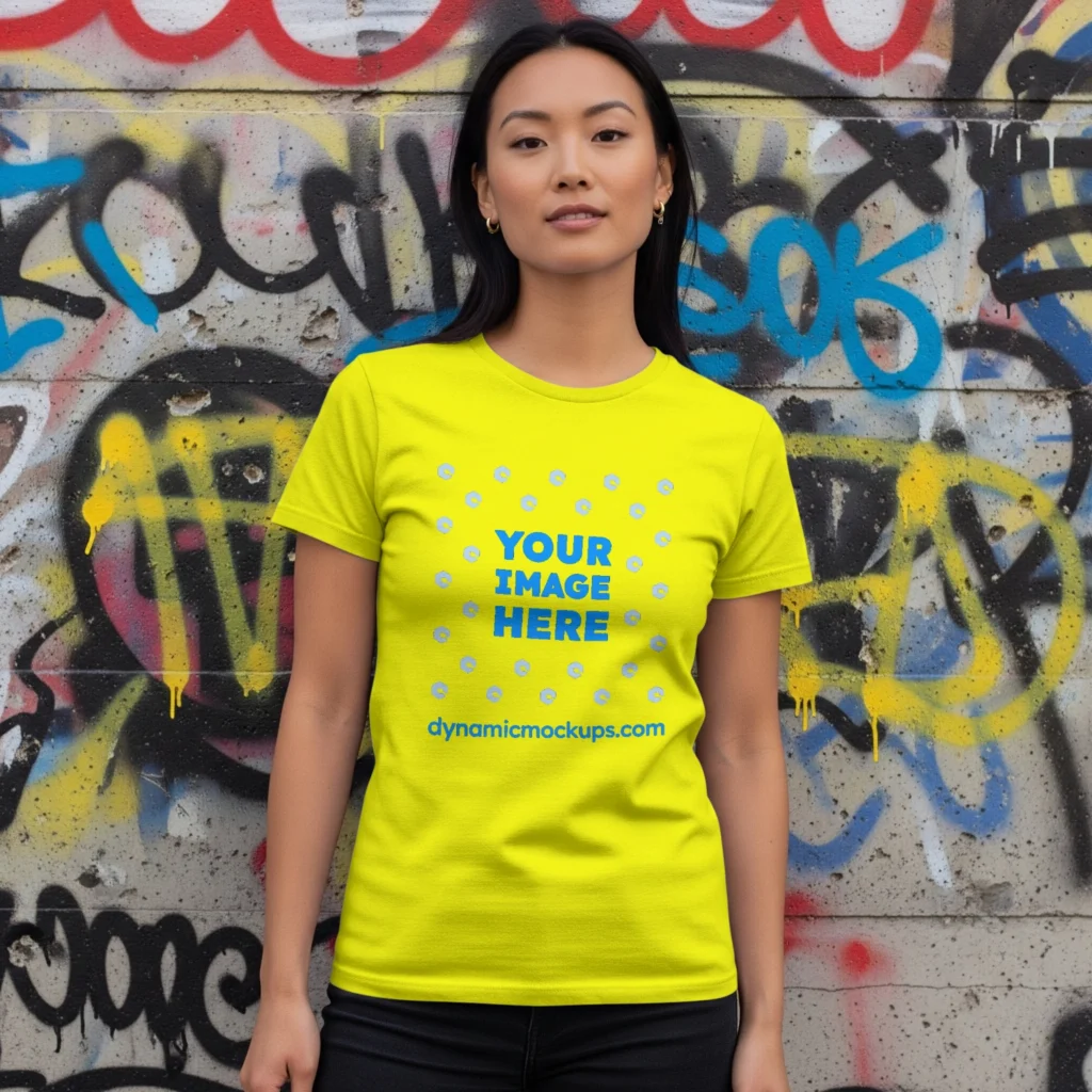 Need an Adult Asian Woman wearing a Yellow Gildan 5000 T-shirt Mockup Template to make a realistic product design? Look no further! Our T-shirt mockup templates are perfect for bringing your creative ideas to life. These mockups add a stylish touch to any design. Download, edit online, or use Photoshop to personalize and present your T-shirt designs easily. Try Woman wearing a Yellow Gildan 5000 T-shirt Mockup Template #17624 now!