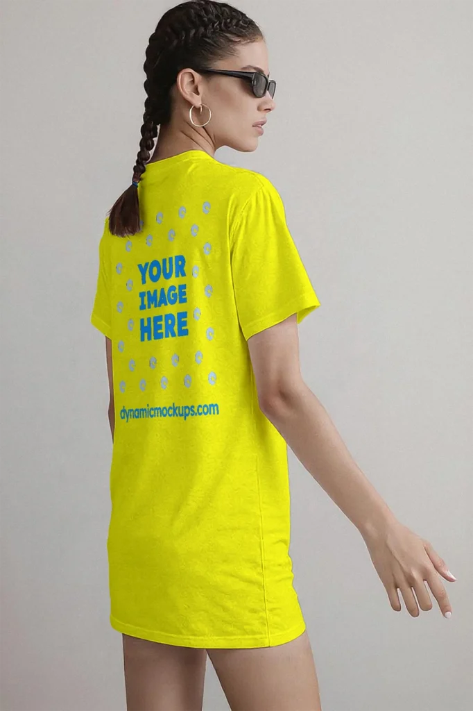 Woman Wearing Yellow T-shirt Mockup Side View Template