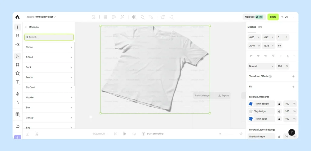 Artboard Studio, on the other hand, gives you far more creative control, which is perfect if you want layered mockups, animation, or brand visuals that stand out but require a bit more design know-how.
