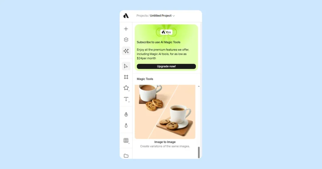 You can access AI-powered features via the Magic Tools option on the dashboard, but only in the paid plans.