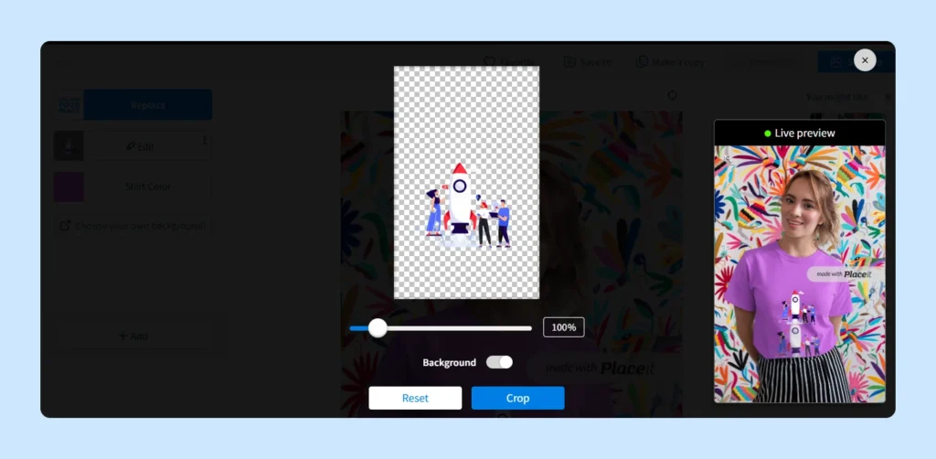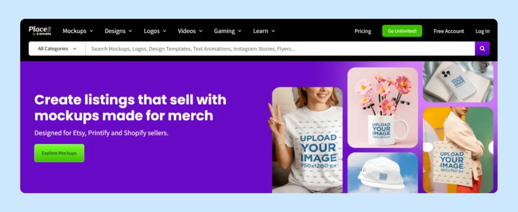You can use Placeit for free, but with limited access to templates and features. Additionally, free users can’t freely download or sell their designs.