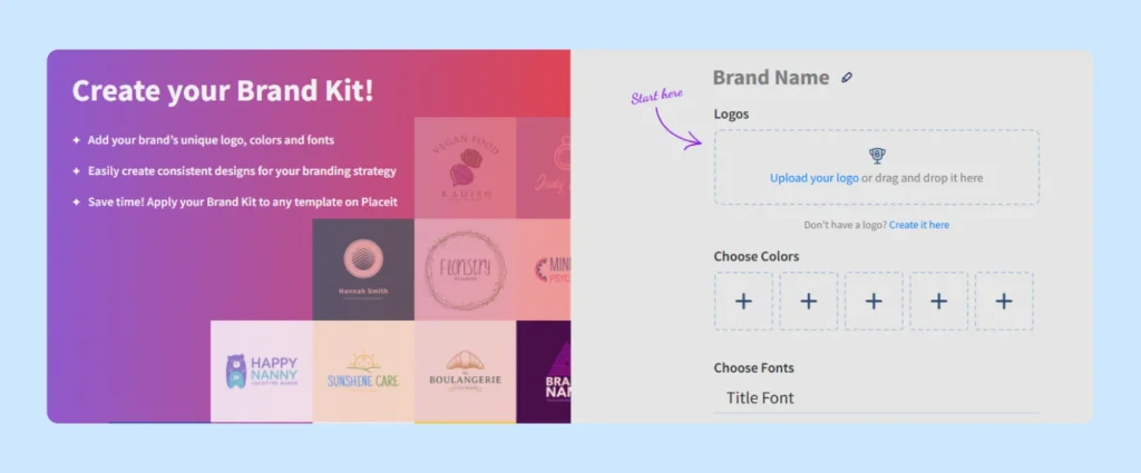 You can create or add your logo, and customize colors and fonts to match your brand.